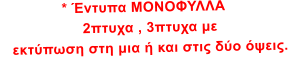 * Έντυπα ΜΟΝΟΦΥΛΛΑ ή ΔΙΠΤΥΧΑ με εκτύπωση στη μια ή και στις δύο όψεις.